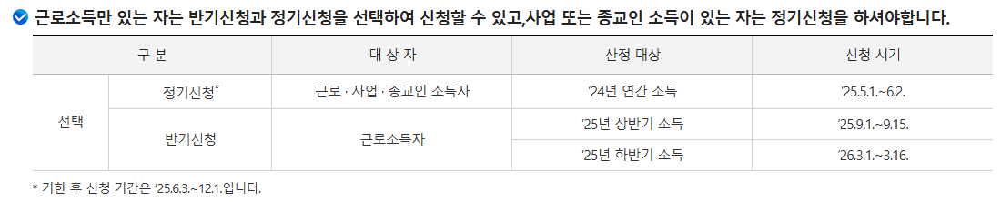 - 연 1회 또는 반기 신청 가능
